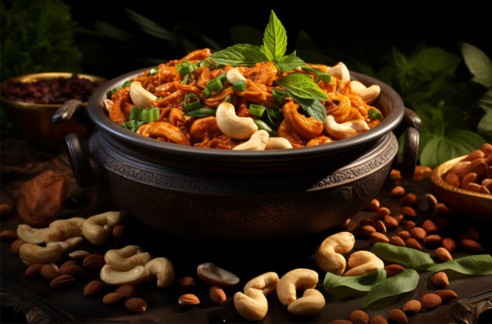 Aromatic rice enriched with roasted cashews.