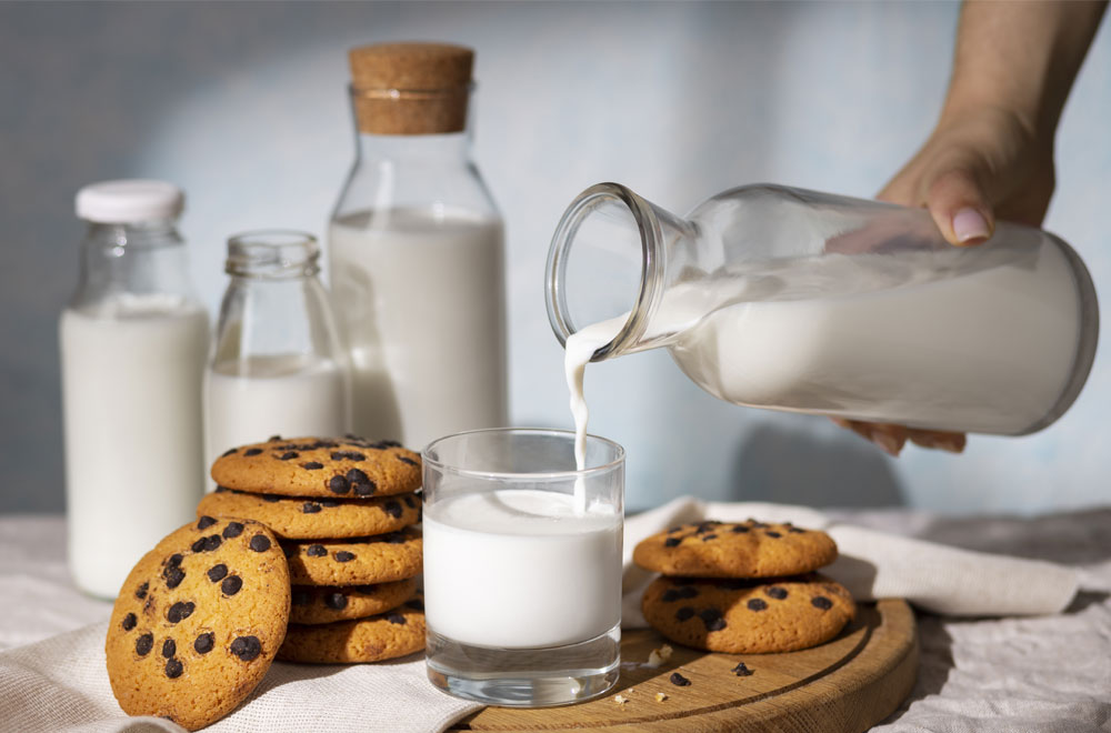 Chilled almond milk delight.
